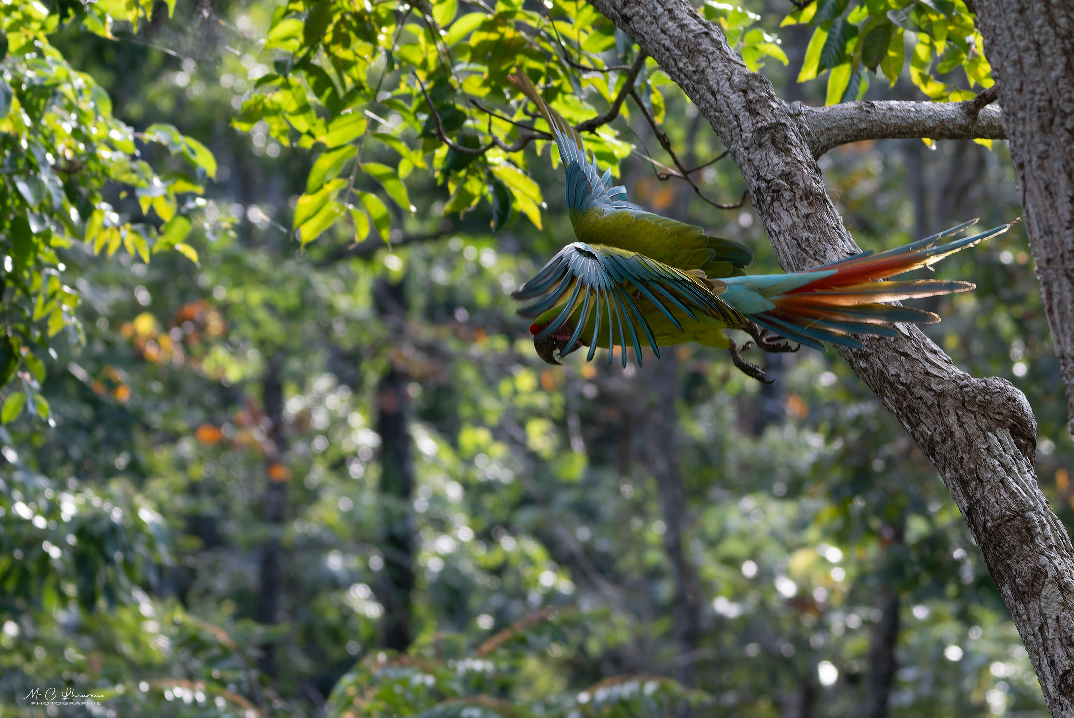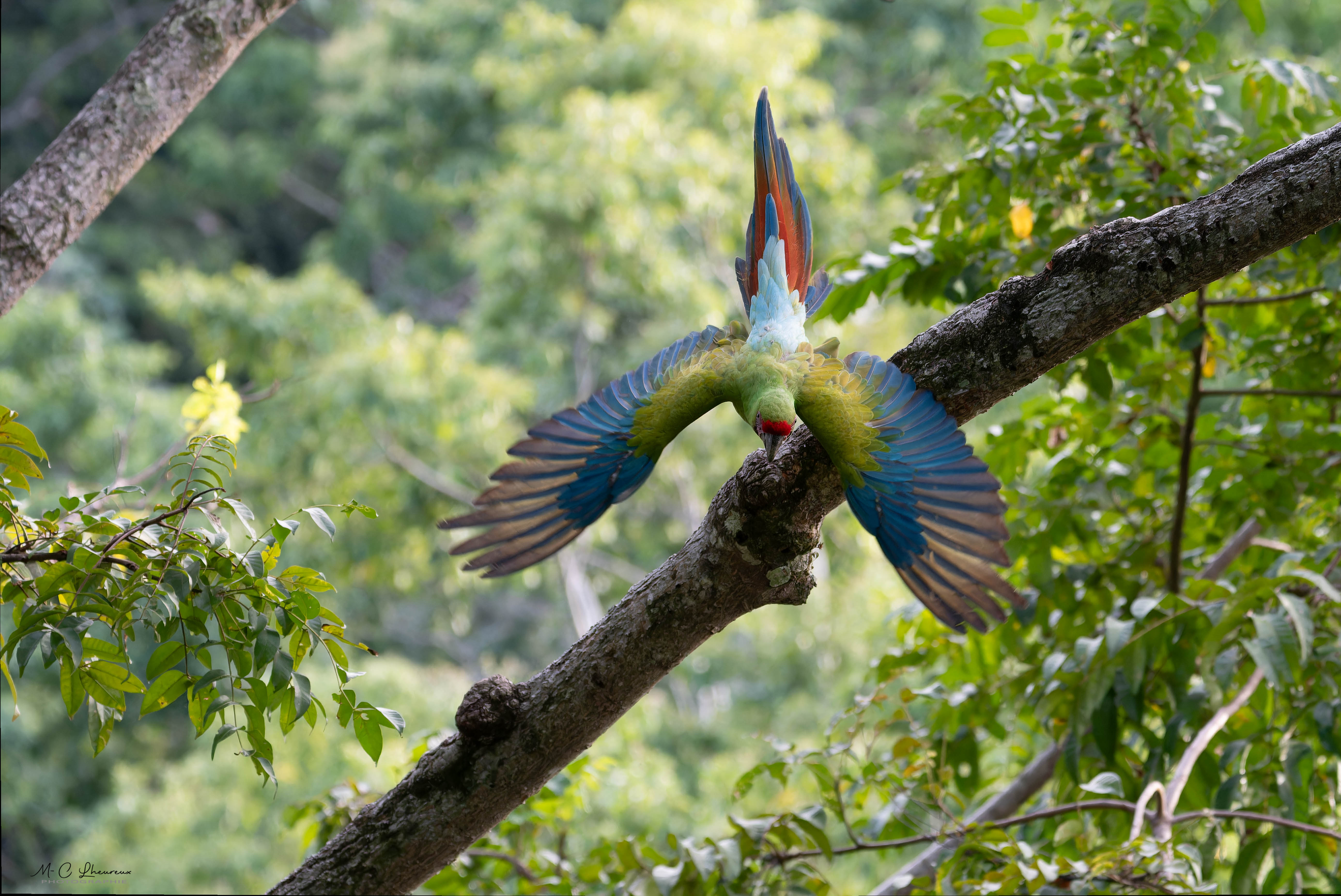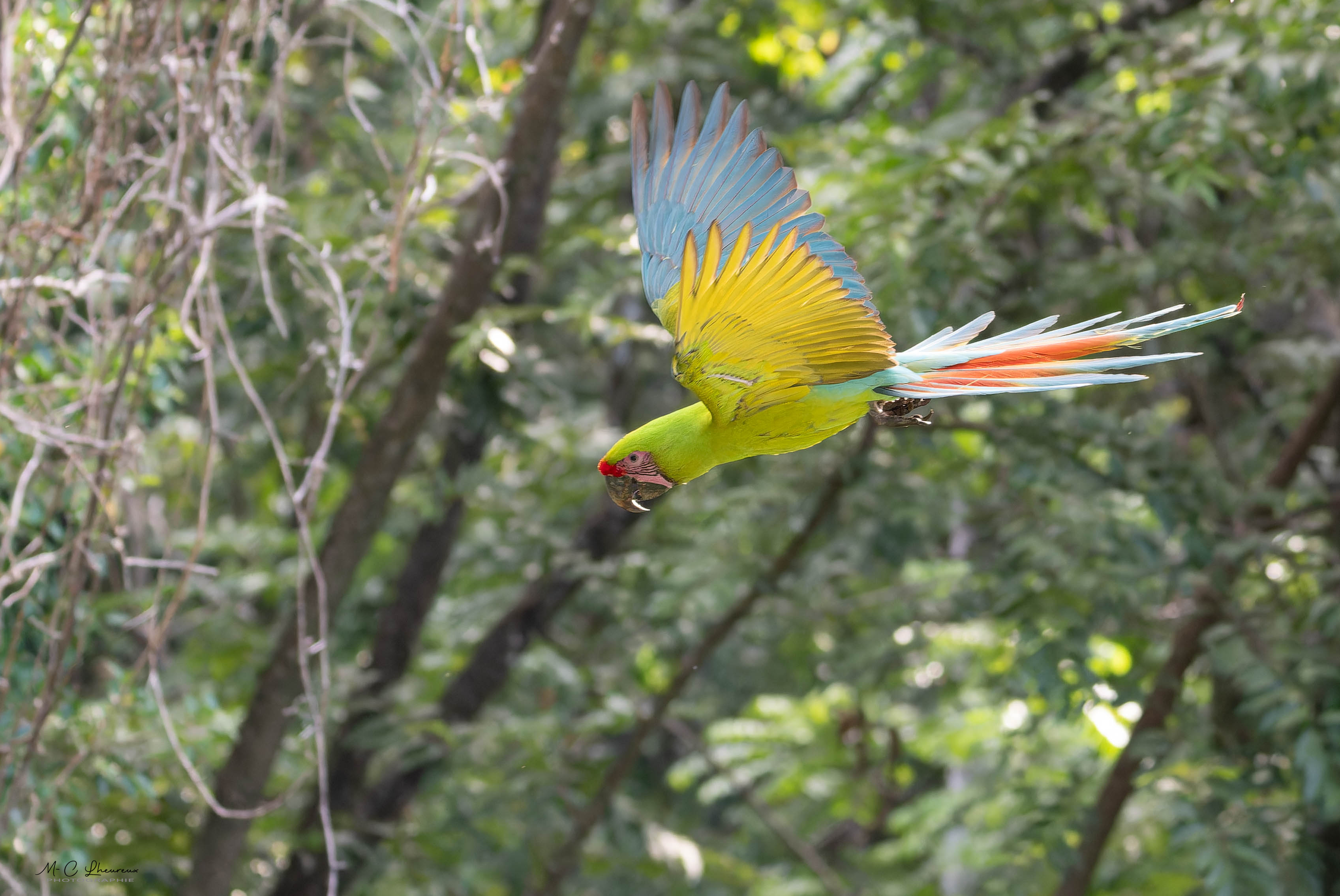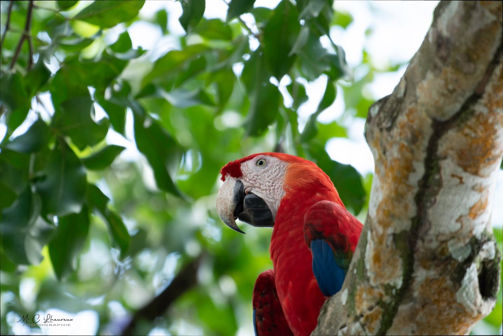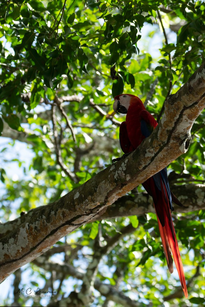 Dans l’après midi, nous allons photographier les aras verts au centre de protection à Manzanillo.
