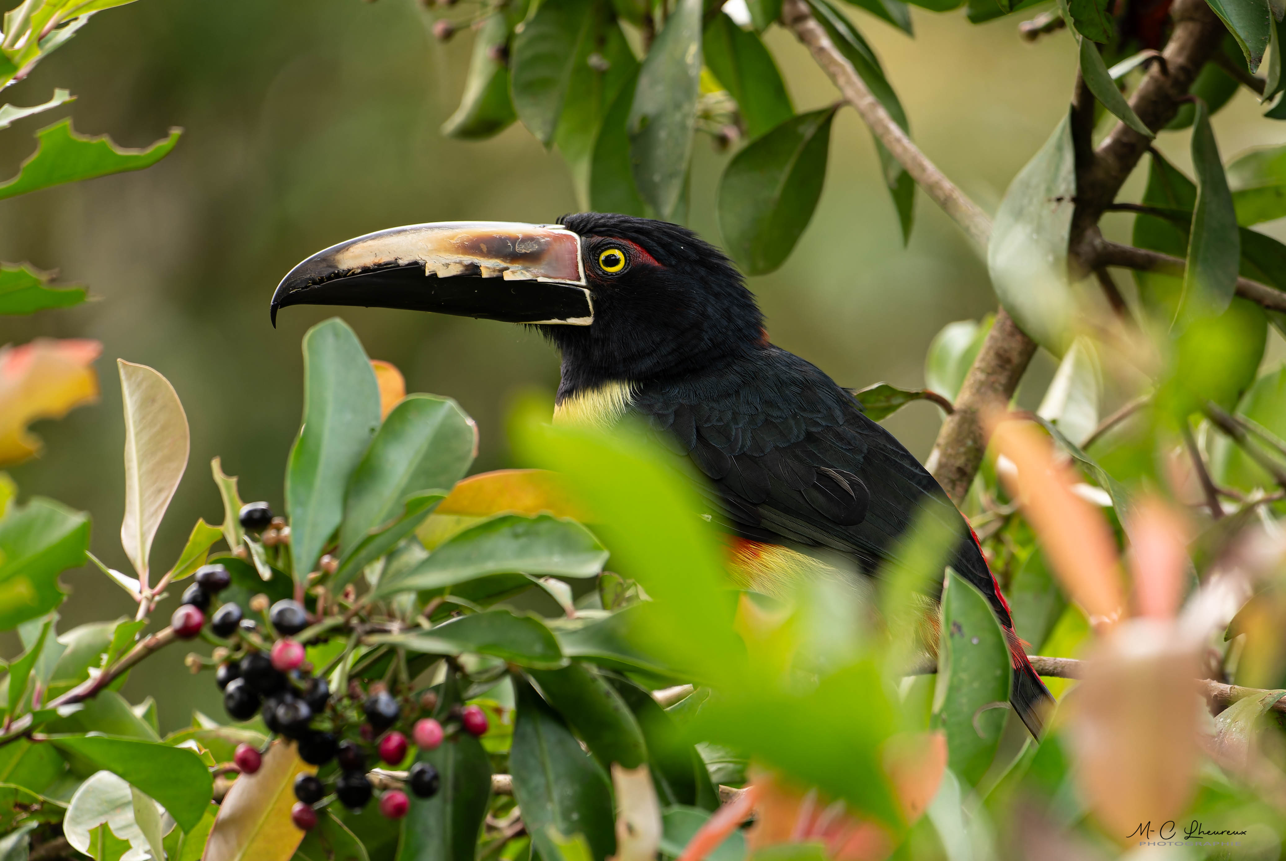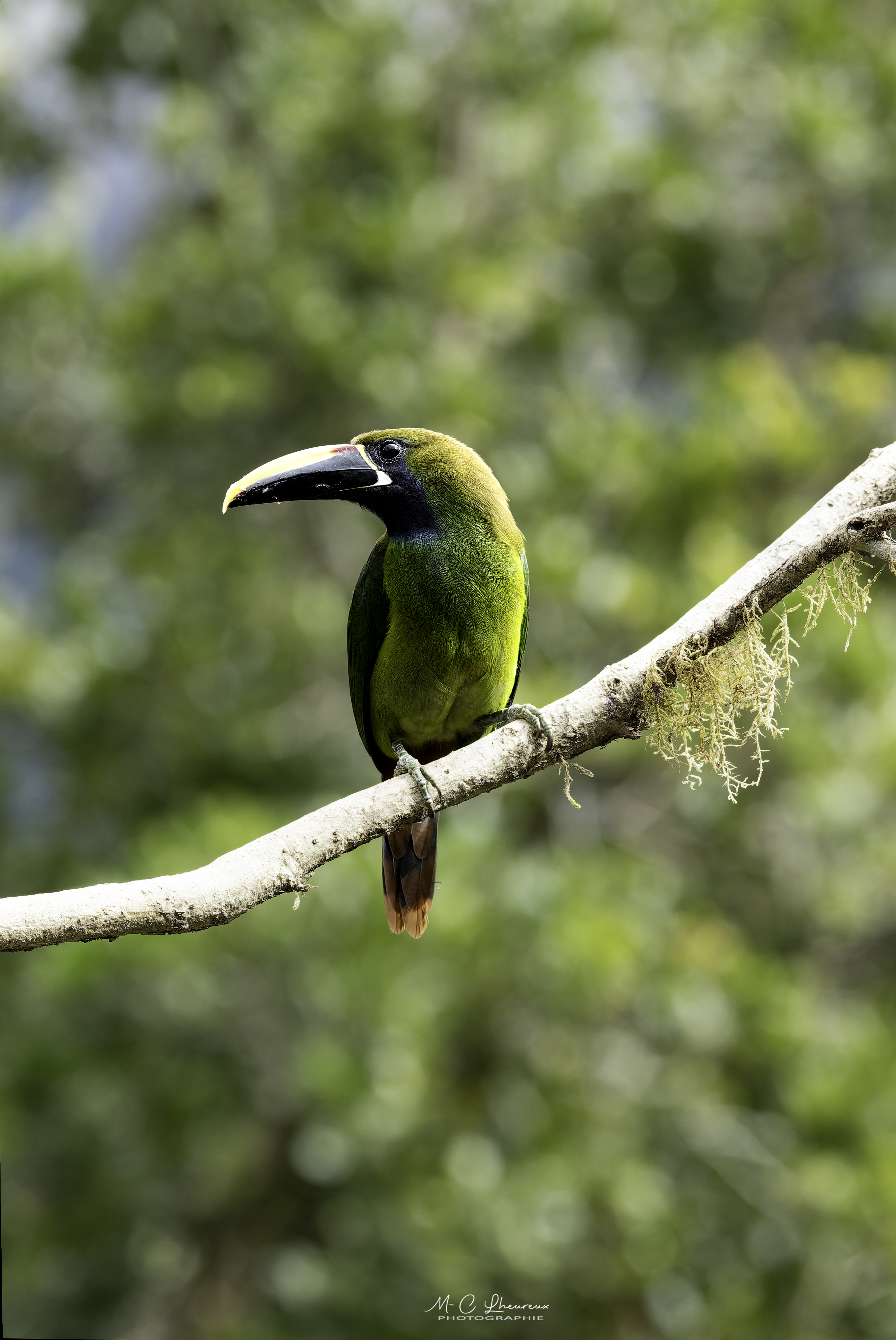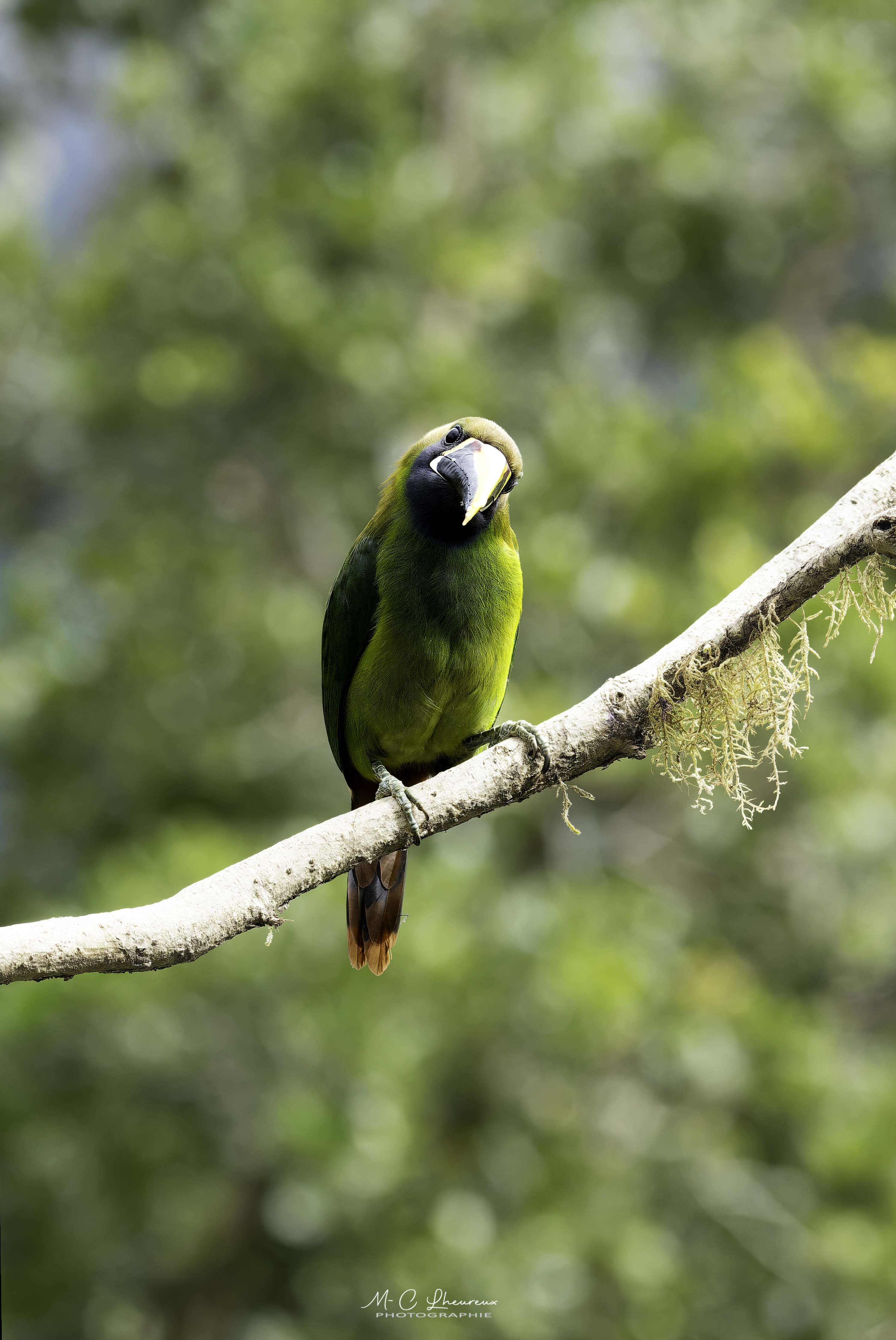 Nous avons eu la chance qu’un Toucanet vienne se poser juste devant sur une branche et qu’il y reste un petit moment.