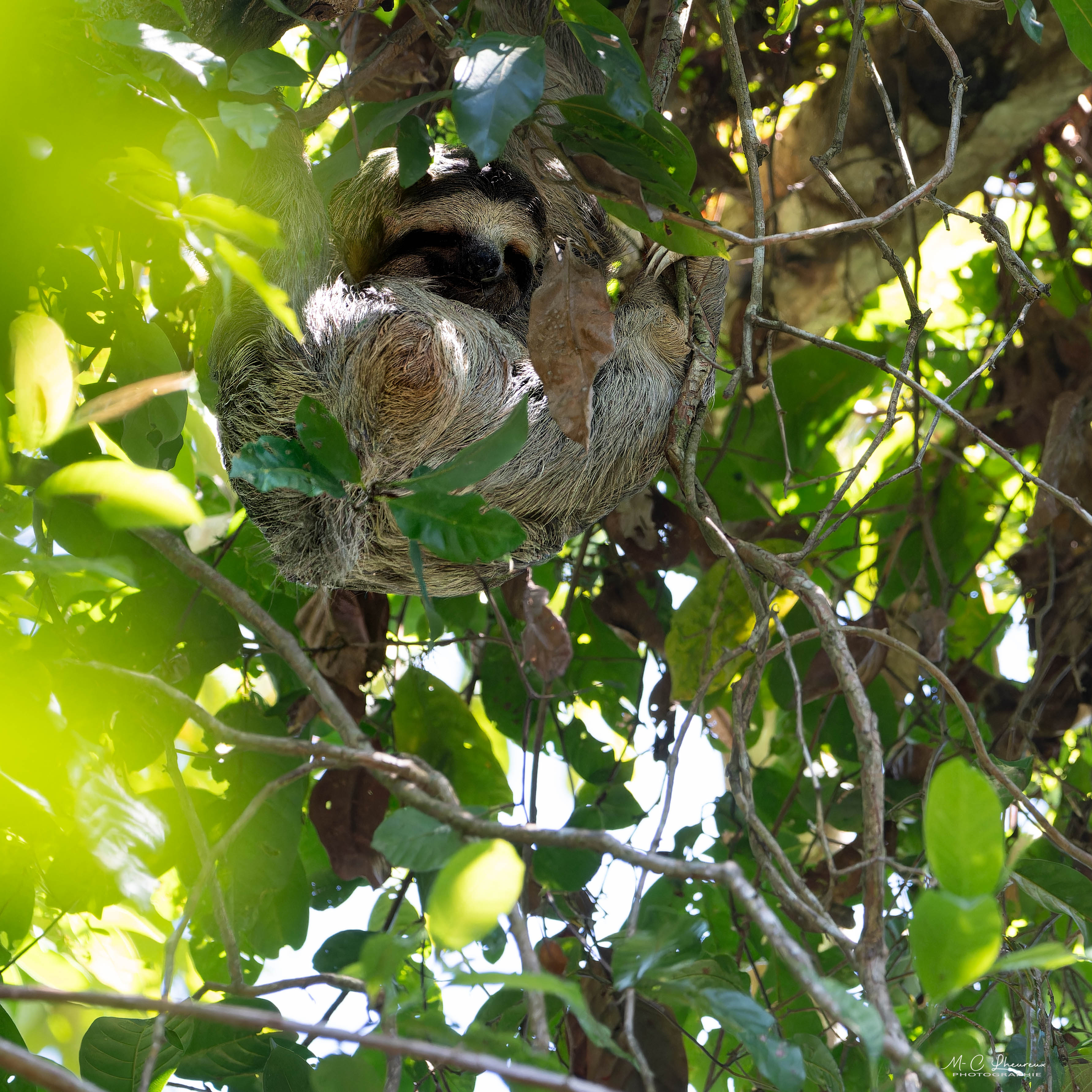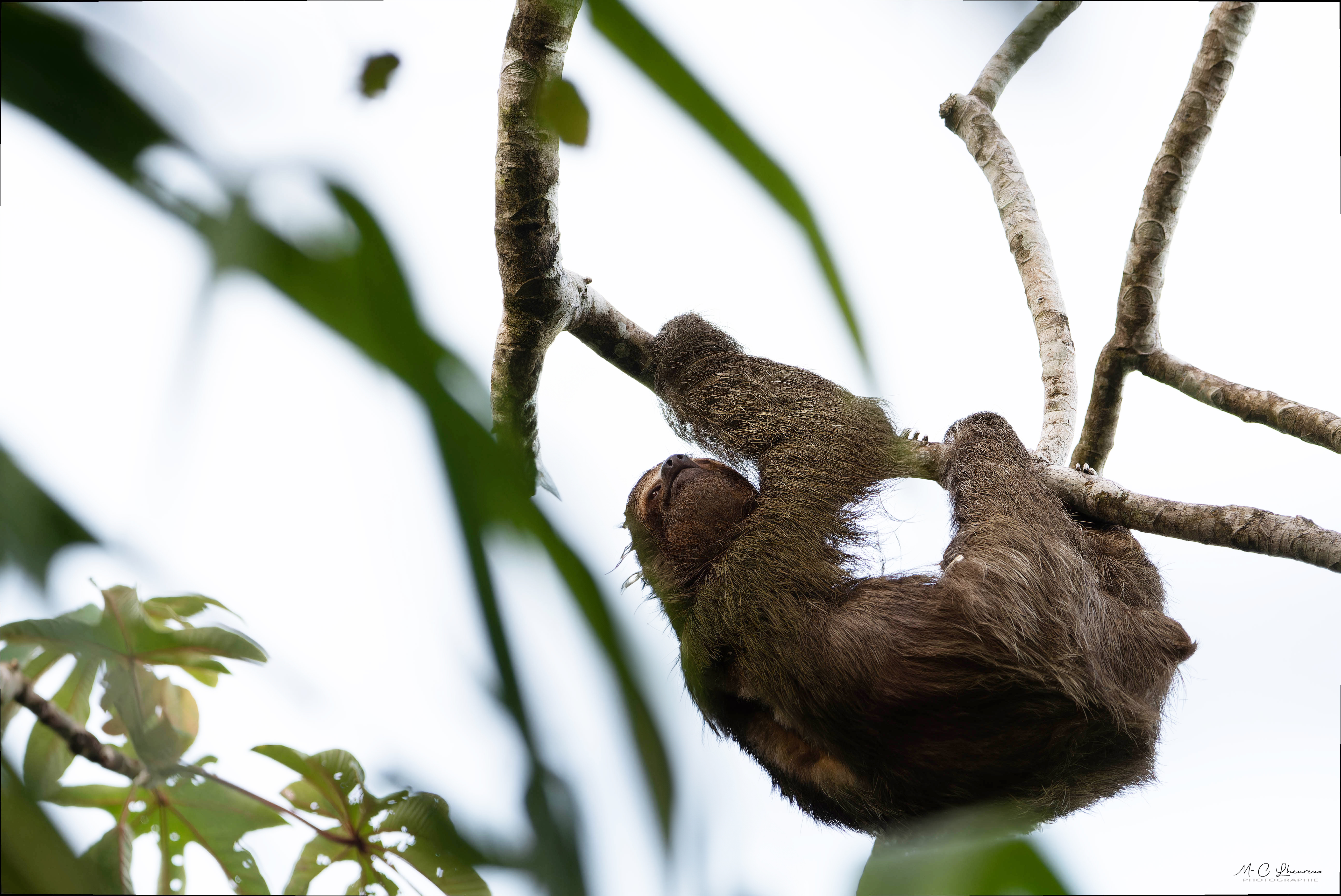 Après un temps libre, nous repartons faire une promenade sur la plage toujours à la recherche de bébés tortues. Nous en ratons une de cinq minutes la vague a été plus rapide que nous. Nous croisons un paresseux à trois doigts, un hocco à face nue et les éternels courlis.