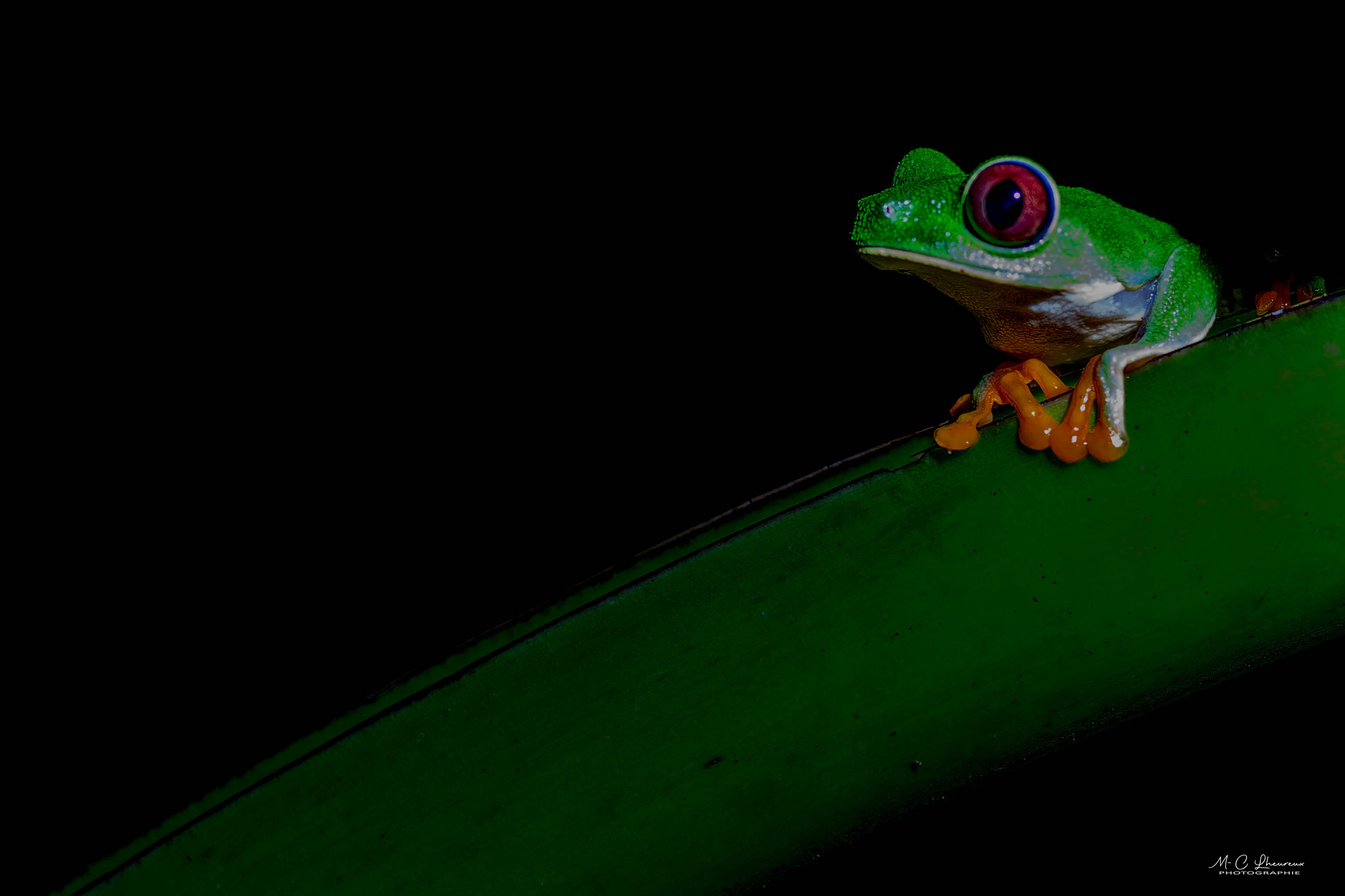 Nous finirons notre journée par une sortie nocturne pour essayer de pouvoir photographier la fameuse petite grenouille verte aux yeux rouges toujours avec notre guide Christian.