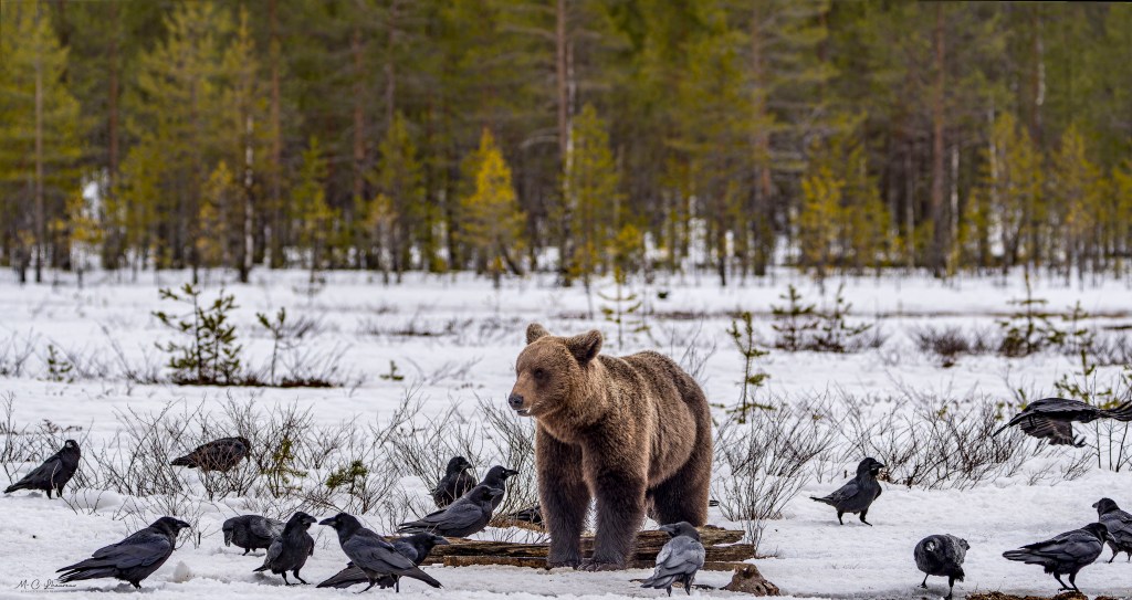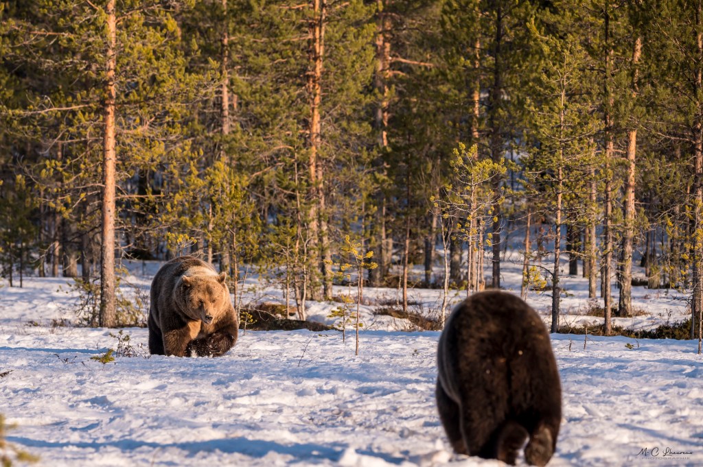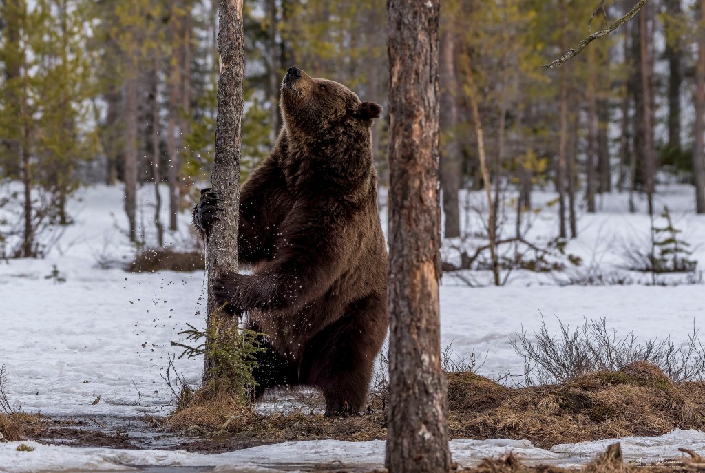 La région de Kuhmo est réputée pour être l’une des meilleures en Europe où observer au plus près l’ours brun, véritable emblème des forêts sauvages européennes ainsi que les grands tétras, les tétras lyres, les loups, les gloutons.