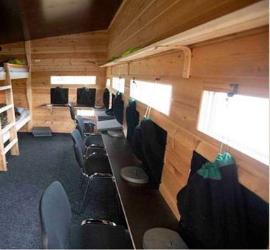 Les affûts Grands Prédateurs sont équipés de lits superposés, de toilettes sèches et d’un chauffage au gaz. Ceux pour les Tétras sont plus rustiques de tailles plus petites voir individuels pour le Grand Tétras. Ils n’ont pas de commodités et les lits sont des matelas à même le sol.
